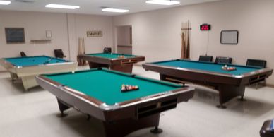 Our billiard room contains all you need to play a game of pool. With room for four games, its the perfect place to play a game with friends.